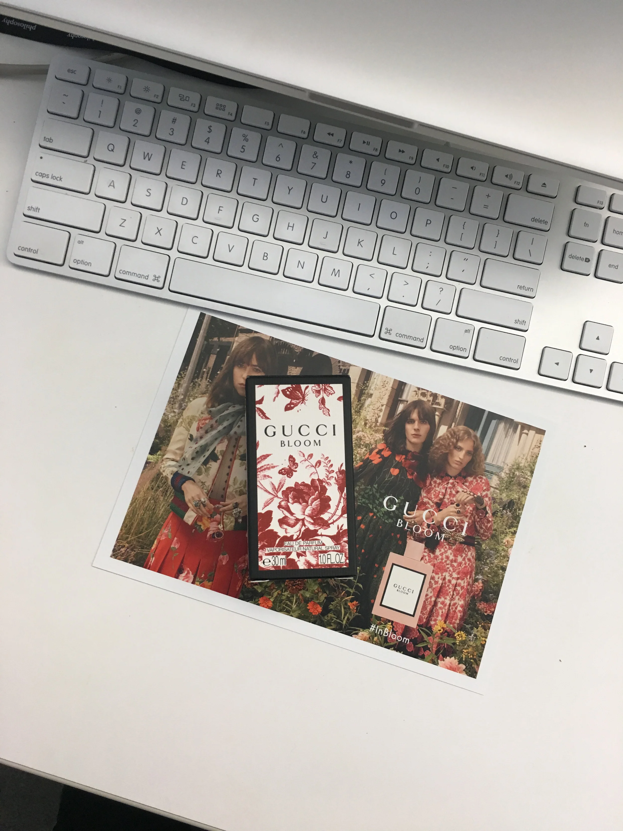 Adorable little pop up for the launch Gucci Bloom Launch Party at Coty September 27, 2017 Desk Drop of the new fragrance!